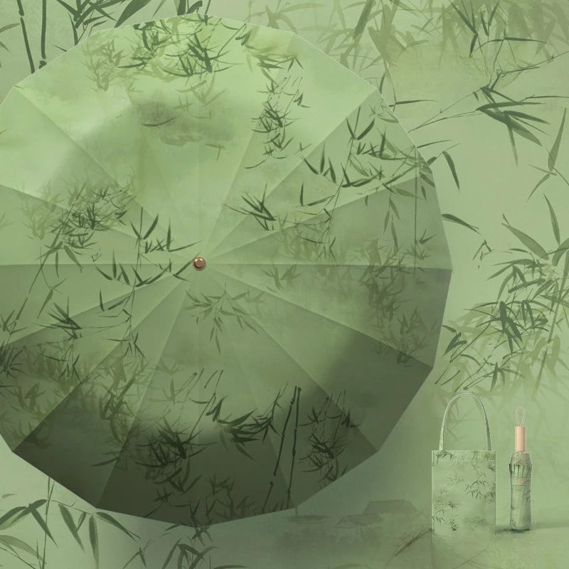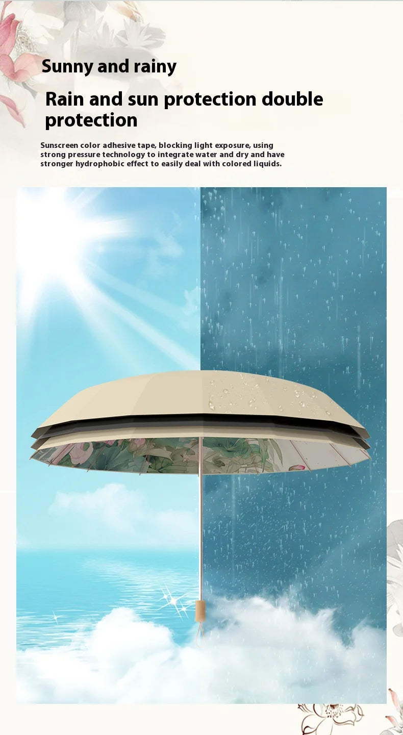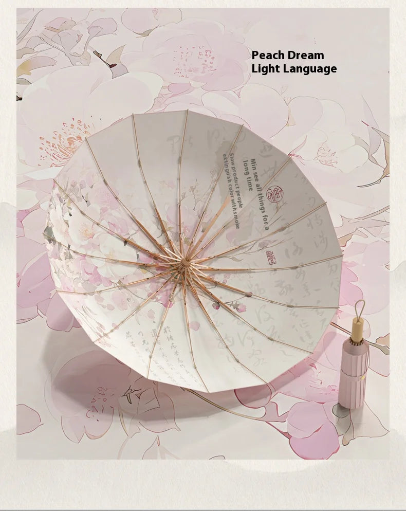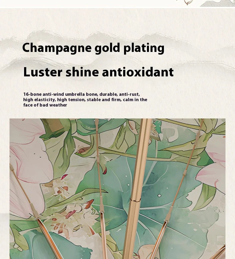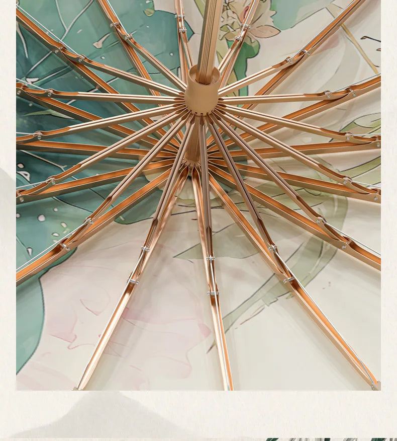 Retro Folding Umbrella – UV & Rain Protection, 16-Rib Gold Frame