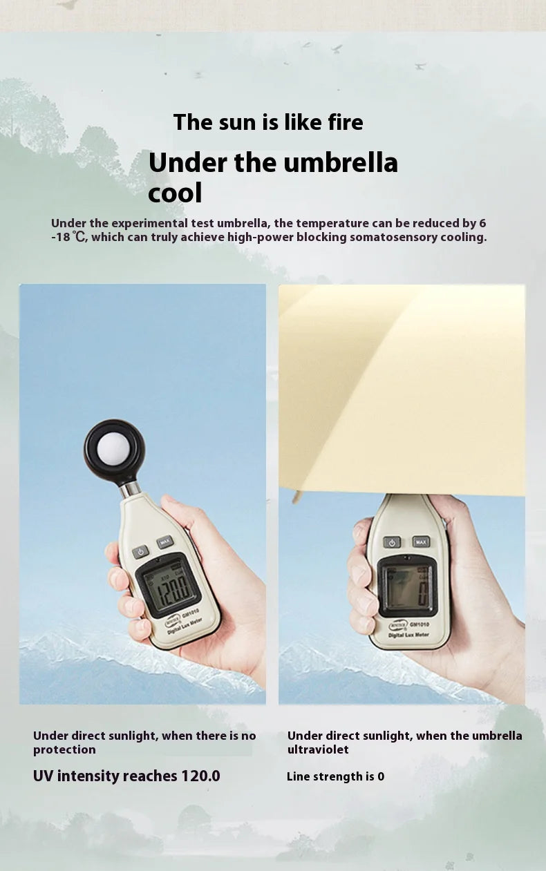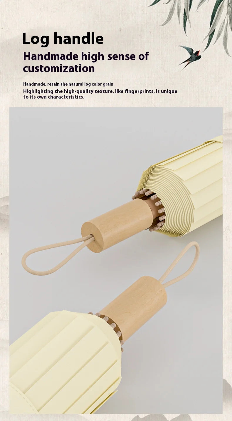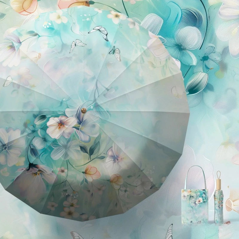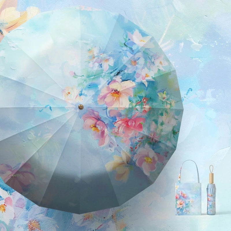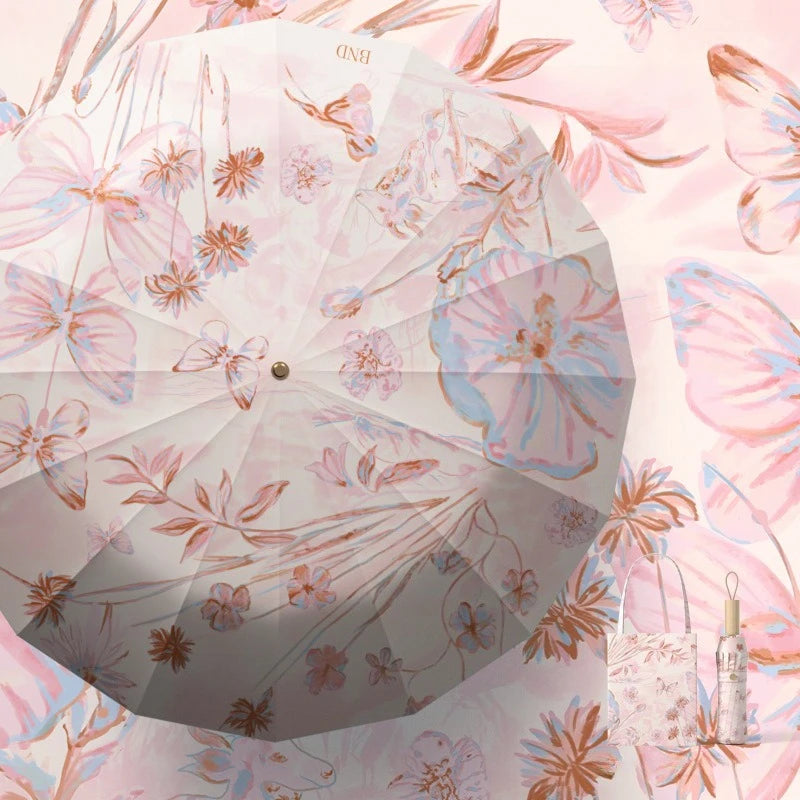 Retro Folding Umbrella – UV & Rain Protection, 16-Rib Gold Frame