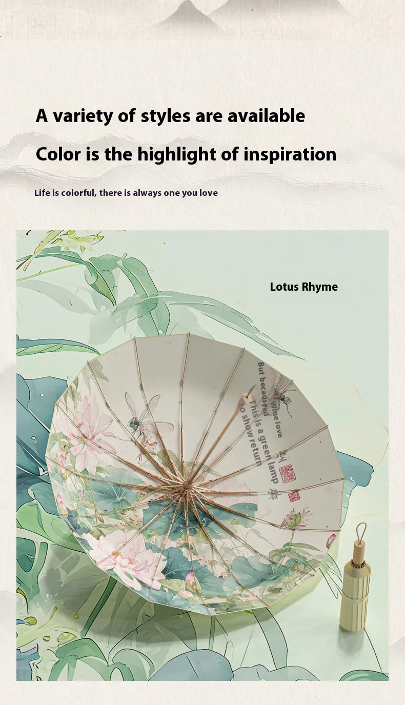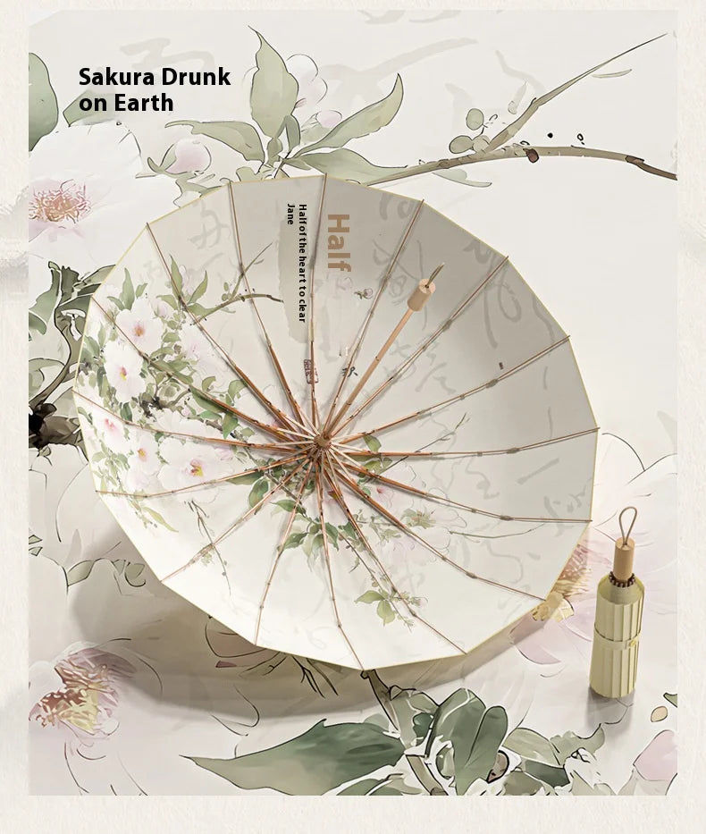 This elegant retro-style folding umbrella is crafted with a durable 16-rib gold aluminum alloy frame, offering enhanced wind resistance and long-lasting use. The canopy features a color glue vinyl coating that provides excellent UV protection, making it ideal for both sunny and rainy days. Its manual open-and-close design keeps it lightweight and easy to carry, while the classic floral prints add a timeless charm. Available in three beautiful variants — Cherry Blossom, Lotus, and Peach Blossom — this umbrella combines vintage aesthetics with modern functionality for everyday elegance.